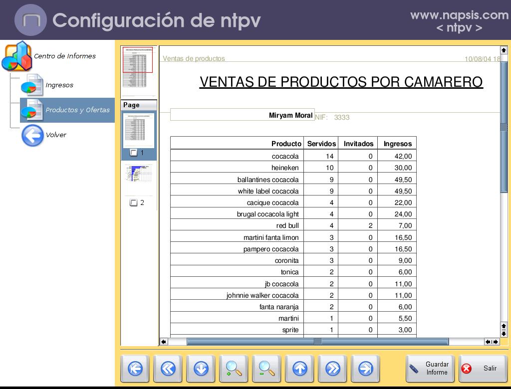 nTPV Backoffice es el sistema de configuración y centro de información de nTPV. Al igual que éste, sigue la misma filosofía de sencillez de operación para el usuario. A través de esta herramienta, tareas tan necesarias como recoger información detallada de las ventas, dar de alta nuevos productos o cambiar los precios son tan sencillas como intuitivas.
